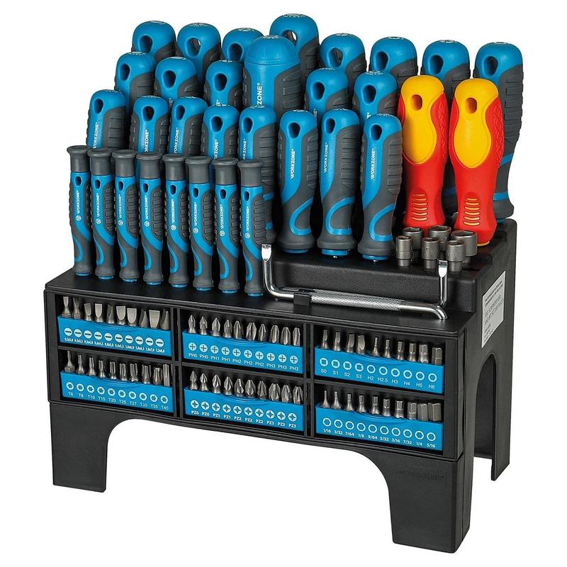 WORKZONE 100-ти компонентный XXL набор отверток и бит -- универсальный комплект инструментов для дома и профессионального использования. В набор входят различные отвертки и биты, подходящие для ремонта техники, мебели, электроники и других задач. Все инструменты изготовлены из высококачественной стали, что обеспечивает долговечность и надежность. Эргономичные ручки позволяют удобно держать и точно закручивать винты. Набор упакован в практичный кейс для удобного хранения и переноски. Отличный выбор для механиков, электриков, мастеров и домашних пользователей, которые ценят качество и комфорт в работе.