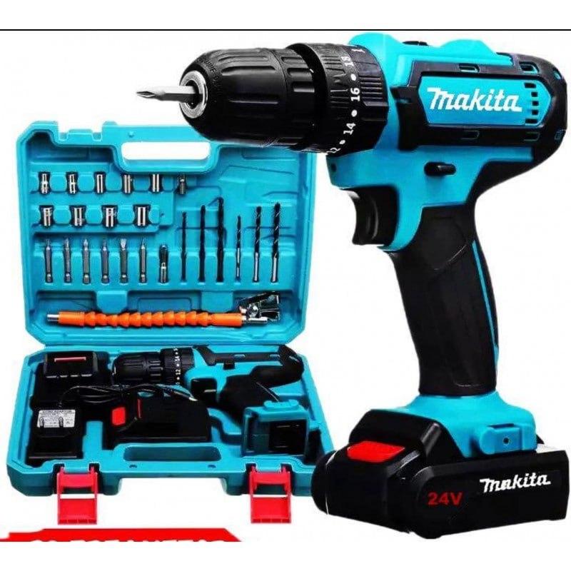 Акумуляторний шурупокрут 24v з набором інструментів makita, набір біт і запасний акумулято...