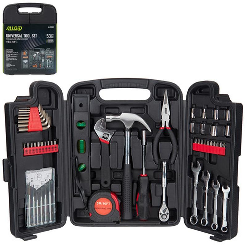 Alloid NI-3053 – универсальный набор на 53 предмета для дома, авто и дачи. Компактный кейс с молотком, ключами, трещоткой, битами, отвертками, рулеткой, уровнем и головками – все необходимое для бытового ремонта и обслуживания авто. Идеальный выбор для домашнего мастера, автолюбителя, электрика или монтажника. Применение: • Бытовой ремонт • Электромонтажные работы • Сборка мебели • Обслуживание авто • Работы по дереву и гипсокартолету • Гараж, майстерня, дача • Прочные ручки с рельефом - удобно держать даже во влажных руках • Металл с антикоррозийным покрытием — не боится перепадов температур • Систематизация в кейсе — инструменты не теряются • Маркировка каждого элемента — быстрый доступ к нужному • Эргономичная форма — для снижения нагрузки на руку 🔧 Комплектация (53 элемента) - Молоток столярный - Пассатижи долгогубцы - Регулируемый разводной ключ - Трещотка (трещотка) - Подовжена ручка для головок - Викрутка хрестова - Отвертка шлицевая - Рулетка 5 м - Уровень пузырьковый (3 капсулы) - 6 комбинированных ключей ( рожково-накидные, разных размеров) - 8 торцевих головок под трещотку - 8 шестигранников (Г-образных) в держателе - 6 мини отверток (прецизионных) у блістері - 20 сменных бит в держателях (наборы по 10 шт) - Битодержатель Набор отличается компактностью и продуманным хранением — все инструменты надежно закреплены в легком чемодане из ударопрочного пластика. Благодаря эргономичной ручке кейс удобно носить, а фиксаторы-защелки надежно удерживают крышку во время транспортировки. Идеальный вариант для хранения дома, в гараже или в автомобиле.