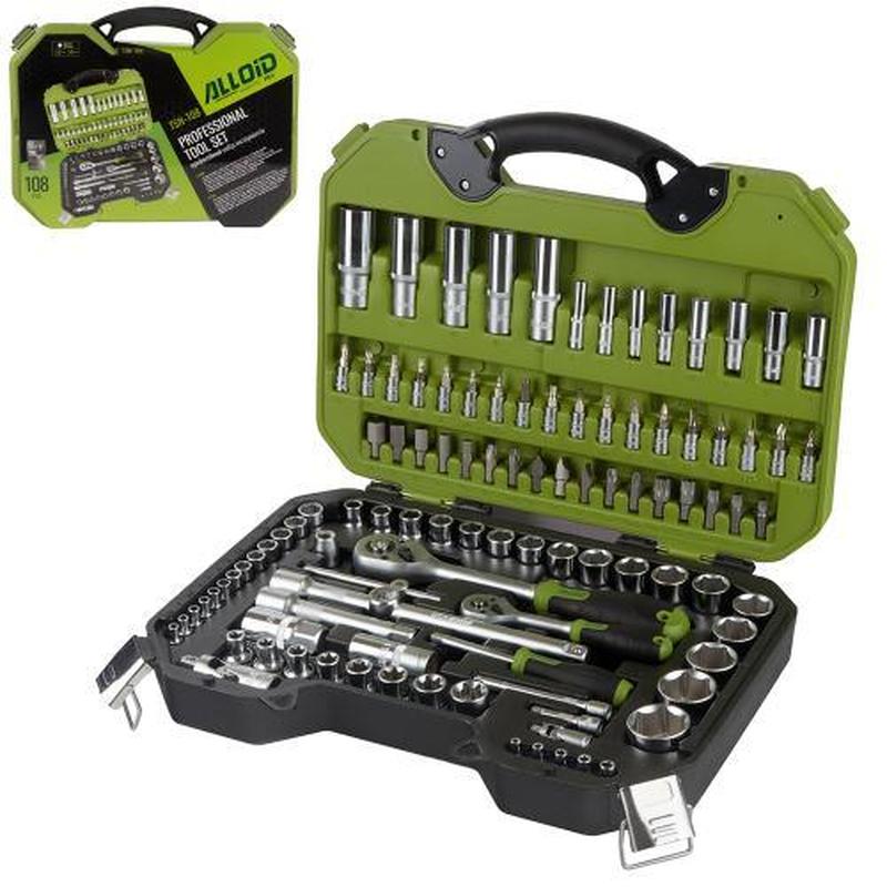Профессиональный набор инструментов Alloid TSN-108 объединяет 108 предметов для любых монтажных и ремонтных работ. Эргономичный кейс из прочного пластика удобно сохраняет и транспортирует весь комплект. Характеристика товару: - Количество предметов: 108 - Приводы: 1/2| и 1/4| - Комплектация: - торцевые головки 6-гранные (скоростъемные и длинные) - биты и битрезы разных типов (Phillips, Torx, шлица, HEX) - трещотки из Quick-Release механизмом - удлинители и переходники - универсальный набор бит-держателей - Материал: хромванадиевая сталь с матовым хромированным покрытием - Кейс: прочный пластиковый с фиксаторами и эргономичной ручкой Преимущества: - Полный набор для домашнего и профессионального использования - Удобная сортировка и быстрый доступ к каждому инструменту - Высокая прочность и коррозионная стойкость - Компактный кейс легко разместить в гараже или багажнике авто
