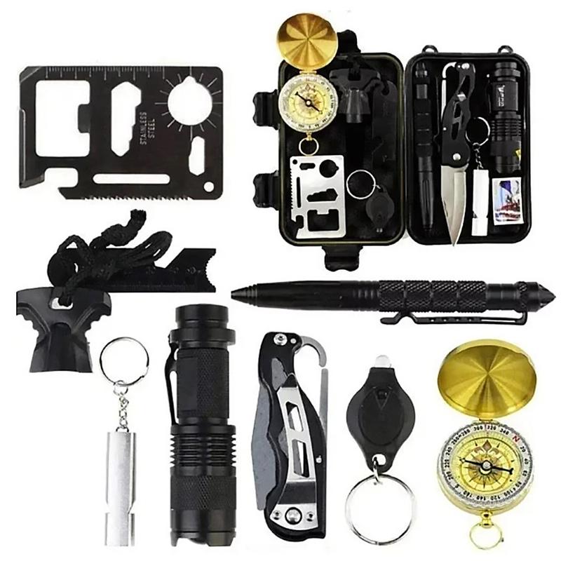 Компактный набор инструментов 9 в 1 содержит все необходимые инструменты в одном месте, включая компас, огниво с кресалом на шнурке, сигнальный свисток, диодный фонарик, ручку, выкидной нож и портативный брелок-фонарик! Преимущества: - Многофункциональность: в наборе содержится 9 различных инструментов, которые помогут вам выжить в экстремальных условиях, включая мультитул, компас, свисток, линейку, открывалку для бутылок и консервных банок, нож - Удобство: набор легко переносить благодаря его компактному размеру и весу, а также легко хранить в рюкзаке или кармане. - Прочность: набор выполнен из высококачественных материалов, обеспечивающих его прочность и долговечность в экстремальных условиях. - Универсальность: набор можно использовать не только для выживания в экстремальных условиях, но и для рыбалки, походов, охоты и других активностей на открытом воздухе. Описание: Туристический набор для выживания 9в1 EL-2381 - это компактный и удобный набор для экстремальных условий, который включает в себя все необходимые инструменты для выживания в экстремальных ситуациях. В наборе содержится 9 функциональных инструментов, которые помогут вам выжить в экстремальных условиях: мультитул, компас, свисток, линейка, открывалка для бутылок, открывалка для консервных банок, нож и рыболовный набор. Мультитул в наборе имеет множество функций и может использоваться в качестве ножа, плоскогубцев, кусачек, отвертки и многих других инструментов. Компас и свисток помогут ориентироваться в местности и привлекать внимание других людей в случае необходимости. Линейка, открывалка для бутылок и консервных банок также будут полезны в экстремальных условиях. Характеристики: - Тип: набор выживальщика / набор для выживания в лесу - Материалы: железо, вольфрамовая сталь, абс-пластик, алюминий, магний - Питание фонарика: 1 батарейка АА 1,5 В (в комплект не входит) - Размер футляра: 17x11x5 см - Количество предметов: 9 - Вес набора (в боксе): 430 гр. Комплектация: - Нож складной - Свисток - Огниво с кресалом на шнурке - Ручка - Фонарик (батарейка в комплект не входит) - Компас с крышкой - Фонарик-брелок - Кредитка - Футляр
