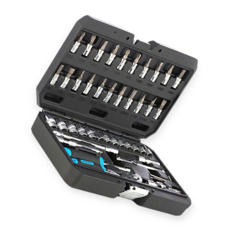 Набор инструмента 1/4" 46 шт, 4-14 мм с трещ., удленит., кардан, отв.-вороток, биты apro