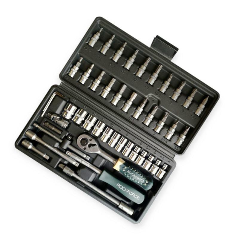 Набор инструмента 1/4" 46 шт, 4-14 мм с трещ., удленит., кардан, отв.-вороток, биты Rock FORCE