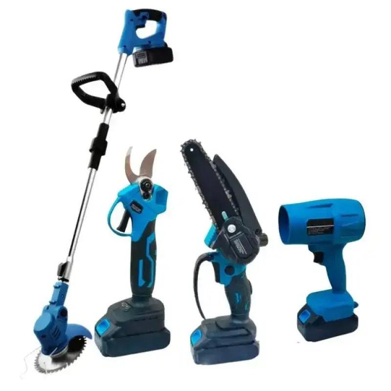 Набор аккумуляторных инструментов 4в1 - это практичный и мощный комплект по уходу за садом и дачным участком. Он включает пыль, секатор, триммер, воздуходув, что делает его идеальным помощником для любых задач на свежем воздухе. С помощью этого набора можно подрезать ветки, косить траву, формировать кусты, убирать листья и мусор. Все инструменты выполнены из крепких материалов, оснащены прорезиненными ручками, что обеспечивает надежный захват и комфорт при длительной работе. Мощный аккумулятор 21 обеспечивает стабильную работу без проводов, а система быстрой смены насадок позволяет мгновенно переходить от одной задачи к другой. В комплекте также шина 6", цепь и лезвие для триммера, что делает набор универсальным решением для дома и сада. Достоинства: - 4 инструмента в одном комплекте - Аккумулятор 21 В - мощная и стабильная работа - Эргономичный дизайн, резиновые ручки - Прочный корпус, устойчивый к влаге и ударам - Для обрезки, стрижки, уборки и ухода за участком Характеристики: - Напряжение: 21 В - Тип питания: аккумуляторный - Инструменты: пила, секатор, триммер, воздуходувка - Дополнительно: шина 6", цепь, лезвие для триммера Комплект поставки: - Пила - Секатор - Триммер - Воздухоходы - Шина 6" - Цепь - Лезвие для триммера - 2 Аккумуляторы 21 В