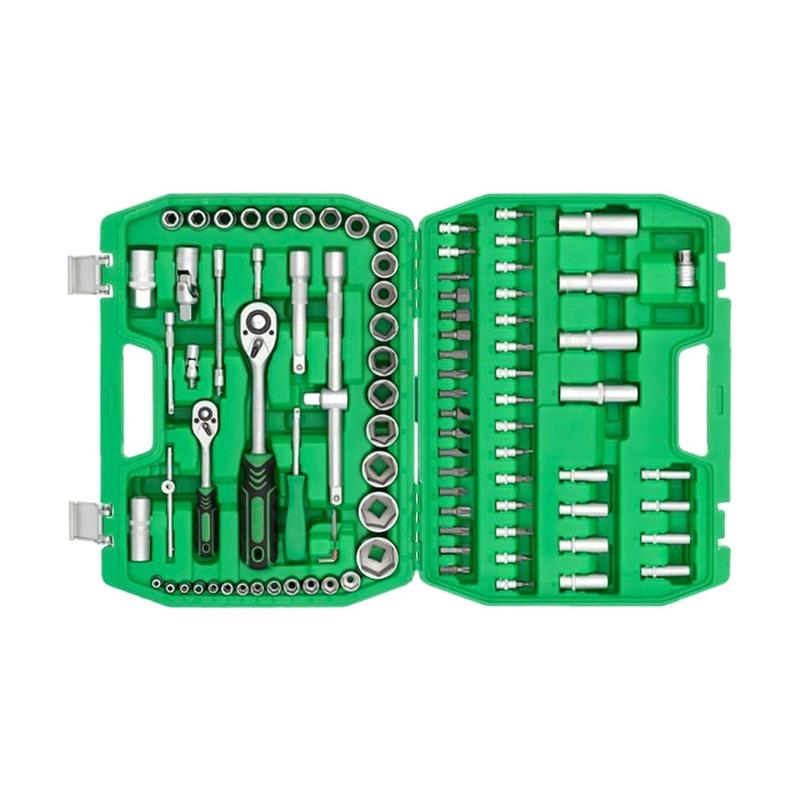 Набор торцевых головок 1/4 94ед, Набор инструментов головок ключей, Автомобильный инструмент головки, NST Набор для тех, кто желает приобрести инструмент для ремонта по дому или нечастых работ в гараже. Пригодятся для починки мебели, сантехники и различных приборов. Самое главное отличие этой линейки от остальных - это оптимальная цена. Инструменты изготовлены из надежной и прочной инструментальной стали. Применять чрезмерно большие усилия к крепежам не рекомендуется, т.к. наборы предназначены для не профессиональных, профилактических работ. Инструмент на любой случай Набор включает 94 элемента для решения любой задачи на откручивание, закручивание крепежей. Для различных видов и диаметров креплений есть целый арсенал шестигранных торцевых головок от 4 до 32 мм. Наличие карданов и удлиненных головок решает вопрос длинных шпилек и винтов. Можно выкрутить крепеж в глубоких колодцах двигателей и в труднодоступных местах, где обычная головка не сможет справиться. Т-образные воротки с плавающей головкой дают дополнительные усилия на прикипевшую гайку. В наборе также поставляется переходник под шуруповерт для головок с насадками, битодержатель и различные типы бит (HEX, TORX, PH, PZ, SL) для разных шлицов болтов. Свечные головки с резиновыми вставками 16 и 21мм потребуются для удобного монтажа свечей зажигания. Удобные трещотки В наборе две трещотки с посадочными квадратами 1/2" и 1/4", с реверсом, кнопкой для сброса и фиксации головок. Храповик на 72 зуба обеспечивает мягкость хода и позволяет работать в условиях ограниченного пространства. Прорезиненная двухкомпонентная ручка надежно сидит в руке и не выскальзывает. DIY-серия Самое главное отличие данного набора от профессиональной и STORM серии - это его доступная цена, материал изготовления инструмента и кейса. При этом функционал остается прежним! Инструменты изготовлены из закаленной углеродистой стали, грани твердые и не стираются при работе. Компактное хранение Кейс набора производится с шарнирными петлями и плотными защелками. Инструменты жестко закреплены в посадочных местах за счет уплотненных ячеек - ничего больше не рассыпается в работе или при ходьбе. Компактный, он легко помещается в багажнике или на стеллаже. Комплектация * * * Трещоточная рукоятка 1/2" 72 зуба, реверсионная с двухкомпонентным покрытием; Головка шестигранная торцевая 1/2" 18 шт.: 10, 11, 12, 13, 14, 15, 16, 17, 18, 19, 20, 21, 22, 23, 24, 27, 30, 32 мм; Головка шестигранная удлиненная 1/2" 4 шт.: 14, 15, 17, 19 мм; Головка свечная 1/2" 2 шт.: 16 мм и 21 мм; Вороток с плавающей головкой 1/2" 250 мм; Кардан 1/2"; Удлинитель 1/2" 2 шт.: 125 мм, 250 мм; Переходник под биты 1/2". Гибкий удлинитель 1/4" 150 мм; Держатель 1/4" для головок и бит 150 мм; Переходник под шуруповерт для головок 1/4" 30 мм. Биты: -HEX 4 шт.: 8, 10, 12, 14 мм; -TORX 4 шт.: T40, T45, T50, T55; -PH 2 шт.: PH3, PH4; -PZ 2 шт.: PZ3, PZ4; -SL 3 шт.: 8, 10, 12 мм. Головка с насадкой HEX 1/4" 4 шт.: 3, 4, 5, 6 мм; Головка с насадкой TORX 1/4" 6 шт.: T8, T10, T15, T20, T25, T30; Головка с шлицевой насадкой SL 1/4" 3 шт.: 4, 5.5, 7 мм; Головка с насадкой PH 1/4" 2 шт.: PH1, PH2; Головка с насадкой PZ 1/4" 2 шт.: PZ1, PZ2. Трещоточная рукоятка 1/4" 72 зуба, реверсионная с двухкомпонентным покрытием; Головка шестигранная торцевая 1/4" 13 шт.: 4, 4.5, 5, 5.5, 6, 7, 8, 9, 10, 11, 12, 13, 14 мм; Головка шестигранная удлиненная 1/4" 8 шт.: 6, 7, 8, 9, 10, 11, 12, 13 мм; Удлинитель 1/4" 2 шт.: 50, 100 мм; Вороток 1/4" с плавающей головкой 110 мм; Кардан 1/4"; Г-образные шестигранные ключи 3 шт.: 1.5, 2, 2.5 мм.