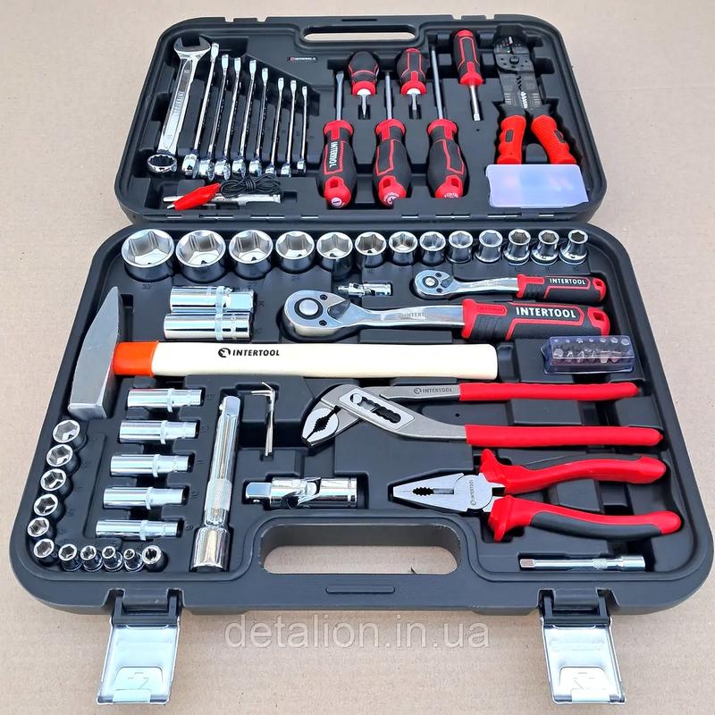 Набор инструментов в чемодане 100ед, Накидные ключи с трещоткой, Набор ручного инструмента, NST - В набор вошли две трещотки с храповым механизмом на 1/2" и 1/4", шестигранные головки 8-32 мм для работы с различными креплениями. - 9 рожково-накидных ключей диаметром от 8 до 19 мм со сбалансированной ручкой и с оптимальными условиями для приложения усилий, пригодятся в быту и для выполнения разноплановых работ на закручивание, откручивание крепежей. - Наличие карданов и удлиненных головок решает вопрос длинных шпилек и винтов. Можно выкрутить крепеж в глубоких колодцах двигателей, в труднодоступных местах, где обычная головка не сможет справиться. - Свечные головки с резиновыми вставками 16, 21 мм пригодятся для удобного монтажа свечей зажигания. - В наборе также есть адаптер для шуруповерта, держатель для бит и различные типы бит (HEX, TORX, PH, SL) для различных шлицов болтов. - Клещи, пассатижи, молоток, индикатор сети, набор различных типов контактов - точно пригодятся в быту, а также для работы с электрическими приборами и устройствами. Харктеристики: - Головки шестигранные, свечные, удлиненные - Трещотка 1/2"; 1/4", 72 зубца - Биты TORX, HEX, PH, SL - Габаритные размеры 430х335х80 мм - Материал изготовления Cr-V сталь - Гарантия 5 лет - Размер головок 8-32 мм - Количество единиц в наборе 100 ед. - Материал кейса ударопрочный пластик - Вес 7,200 к Комплектация: - Трещотка 1/2", 72 зуба, реверсивная; - Головка шестигранная торцевая 1/2", 13 ед.: 10,11,12,13,14,15,17,19,22,24,27,30,32 мм; - Головка свечная 1/2", 2 ед.: 16, 21 мм; - Удлинитель 1/2", 125 мм; - Кардан 1/2"; - Комбинированные ключи, 9 ед.: 8, 10, 11, 12, 13, 14, 17, 19, 22 мм; - Г-образные ключи: 1.5, 2, 2.5 мм. - Трещотка 1/4", 72 зуба, реверсивная; - Головка шестигранная торцевая 1/4", 10 ед.: 4,5,6,7,8,9,10,11,12,13 мм; - Головка удлиненная шестигранная 1/4", 5 ед.: 9,10,11,12,13 мм; - Удлинитель 1/4", 75 мм; - Кардан 1/4"; - Адаптер для бит 1/4"; - Держатель 1/4" для головок и бит 150 мм; - Адаптер для шуруповерта 1/4", 25 мм. - Биты: - TORX 3 ед.: 15, 20, 30; - HEX 4 ед.: 3, 4, 5, 6 мм - SL, 3 ед.: 4, 5.5, 7 мм; - PH 2 ед.: PH1, PH2, PH3; - Клещи сантехнические 250 мм; - Клещи обжимные для проводов 230 мм; - Молоток 300 гр; - Пассатижи 180 мм; - Контакты различных типов; - Индикатор сети. - Отвертки: PZ2x150 мм, - SL6x100 мм, SL5x38 мм, - PH2x100 мм, PH1x38 мм.