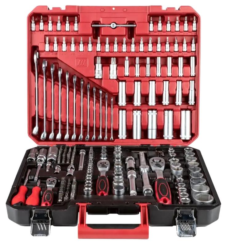 Набор рожково накидных ключей 216ед Parkside (Германия), Набор инструментов в машину, NST В практичном и устойчивом чемодане. В комплекте: 216 элементов. • Изготовлен из хромованадиевой стали, хромомолибденовой стали и стали S-2 • Легко распознаваемые размеры благодаря лазерной маркировке Весь инструмент привезен из Германии. Абсолютно новый, из магазина, в полном комплекте. Имеет немецкие сертификаты качества TUV. Производство для немецкого рынка. Описание из хромованадиевой стали, хромомолибденовой стали и стали С-2 матовая поверхность - легко узнаваемые размеры благодаря лазерной маркировке четко отсортированные инструменты в практичном и прочном футляре 216 позиций: 39 насадок для шестигранных торцевых ключей 18 вставок для шестигранных торцевых ключей с глубоким профилем 14 вставок для торцового ключа с профилем E 3 трещотки с функцией быстрого освобождения. 3 свечных колодца 4 наклоняемых удлинителя 1 удлинитель наклона с адаптером 1 Т-образная ручка 3 поперечных соединения 12 комбинированных ключей 1 держатель отвертки -- можно использовать как удлинитель 1 держатель отверток с магнитным держателем бит 74 бита 32-битные сокеты 3-битные адаптеры 7 шестигранных ключей Материал сталь, пластик Размеры чемодан: около 44,5 х 37 х 9 см (Д х Ш х В) Вес около 10,9 кг