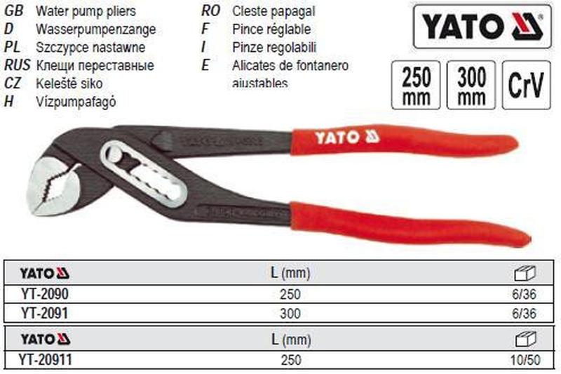 Клещи клищи переставни никель l=300 мм yato польща yt-2091