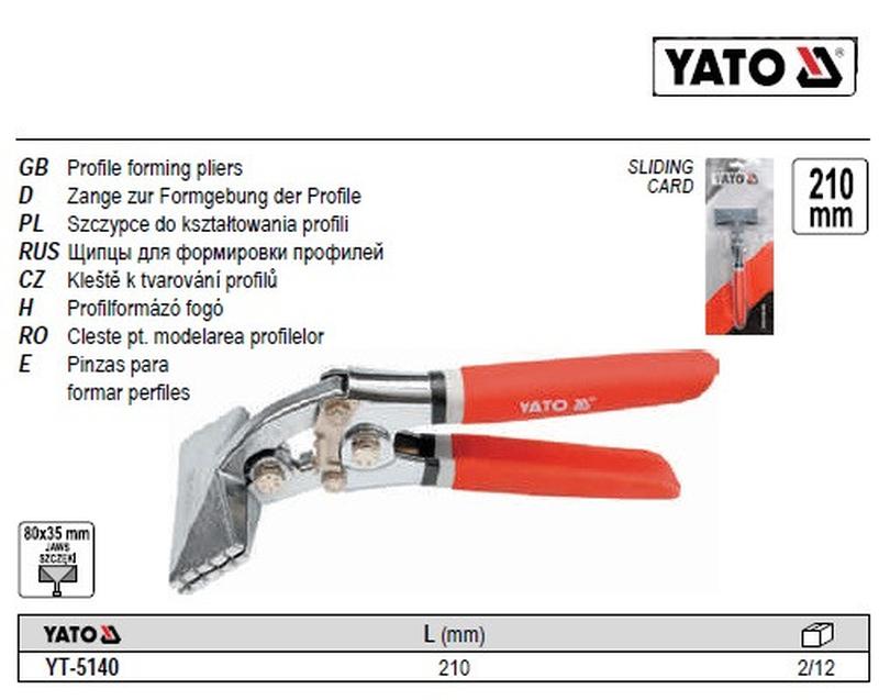 Щипцы yato польша для формирования профиля l=210 мм 80х35 мм yt-5140