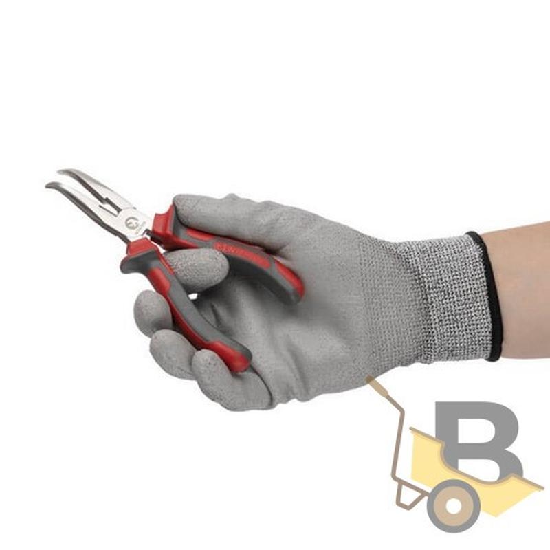 Щипці вигнуті подовжені – універсальний інструмент, необхідний під час будівництва, ремонту побутової техніки та електроніки, а також для ремонту мотоциклів, автомобілів та ін. Щипці виготовлено з високоміцної сталі С55 (твердість за шкалою Роквелла 45-55 HRC) з підвищеною зносостійкістю. Таку марку сталі часто використовують в машинобудуванні, для виготовлення рухомих механізмів. Особливості:- Надійне утримання предметів;- Зносостійкі – виготовлені з сталі С55;- Зручні у роботі;- Довжина губок 55 мм, загальна довжина щипців 160 мм.
