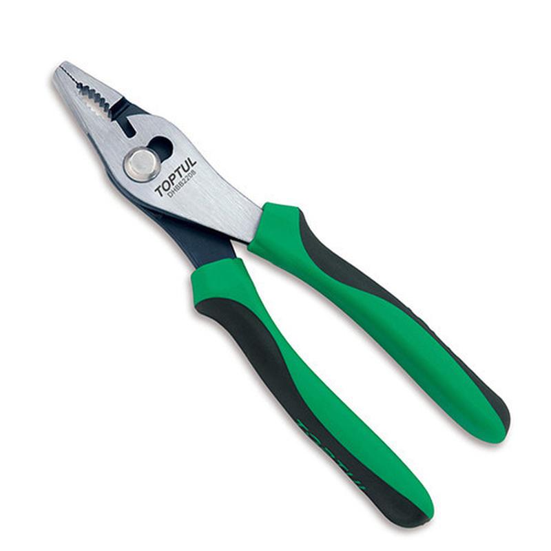 На сегодня в мире разработано новаторами и произведено инструментальными заводами большое количество всевозможных тех. средств по диагностике и спец. ремонту колесного автотранспорта. Относящийся к типу шарнирно- губцевым инструментам плоскогубцы можно отыскать в любом доме и купить плоскогубцы можно в любом строительном магазине. Плоскогубцы применяются при ремонте различной техники и оборудования, а также для слесарных и электромонтажных работ. Плоскогубцы- это клещи, губки которых пирамидальной формы с нанесённой на внутренние плоские поверхности насечкой. С помощью шарнира высокой точности двигается рабочая часть инструмента, что позволяет обеспечить плавную работу. Плоскогубцы используются для захвата мелких деталей и осуществления с ними различных манипуляций (загибания, скручивания, перекусывание проводов и проволоки). В продаже мы можем наблюдать несколько разновидностей плоскогубцев различных форм и размеров для разного применения. Они могут отличаться длинной и шириной губок. Также плоскогубцы оснащены изолирующими удобными рукоятками с мягкими накладками для удобного захвата. | Качество инструмента всегда зависит от прочного материала из которого он производится. В изготовлении инструмента производства завода TOPTUL применяет множество новейших спец. технологий обработки. В технологии производства данного набора используется высококачественная хроммолибденовая сталь индукционной закалки, для лучшего качества и надёжности. Инструменты TOPTUL отличаются высоким качеством, надёжностью и широким сроком службы, а на некоторые группы инструмента распространяется даже пожизненная гарантия.