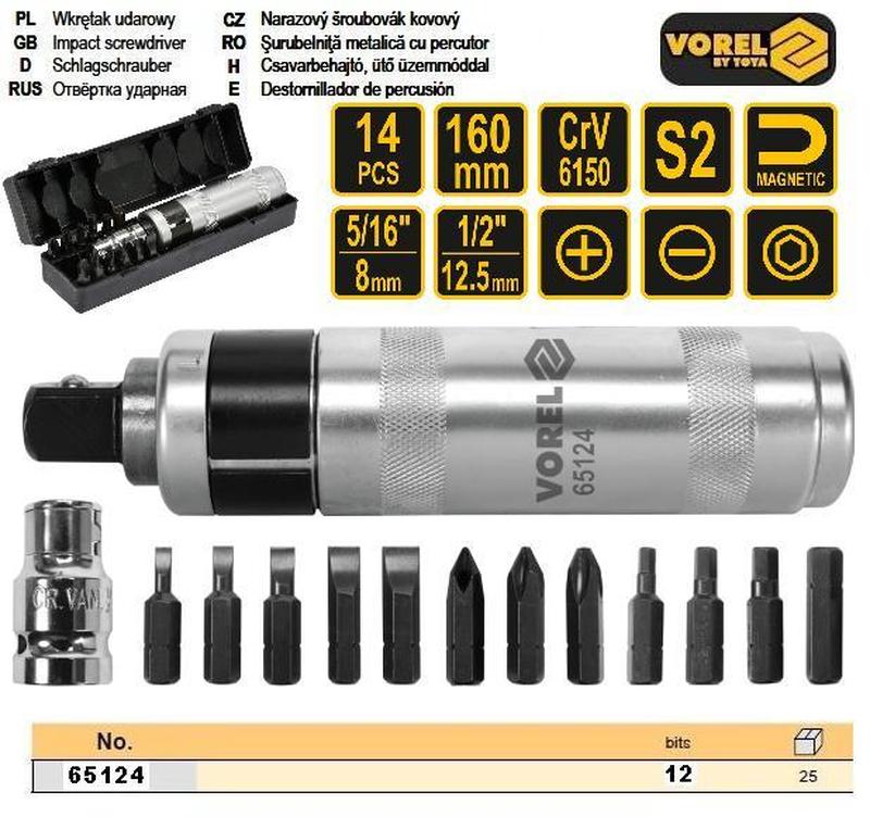 Набор отвертка польша ударная насадки 14 штук vorel-65124