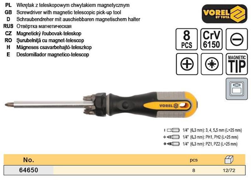 Набор отвертка польша биты crv 8 штук vorel-64650