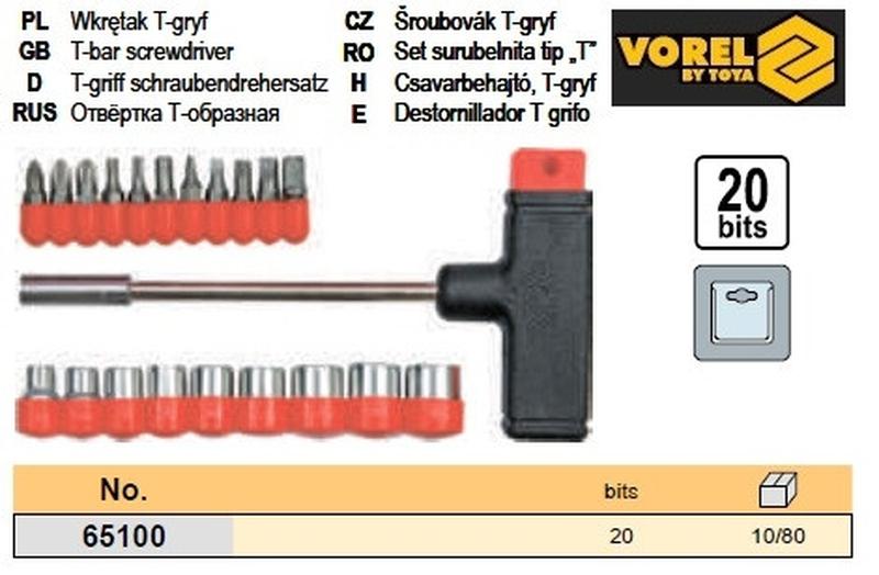 Набор отвертка тип т польша биты головки 20 штук vorel-65100