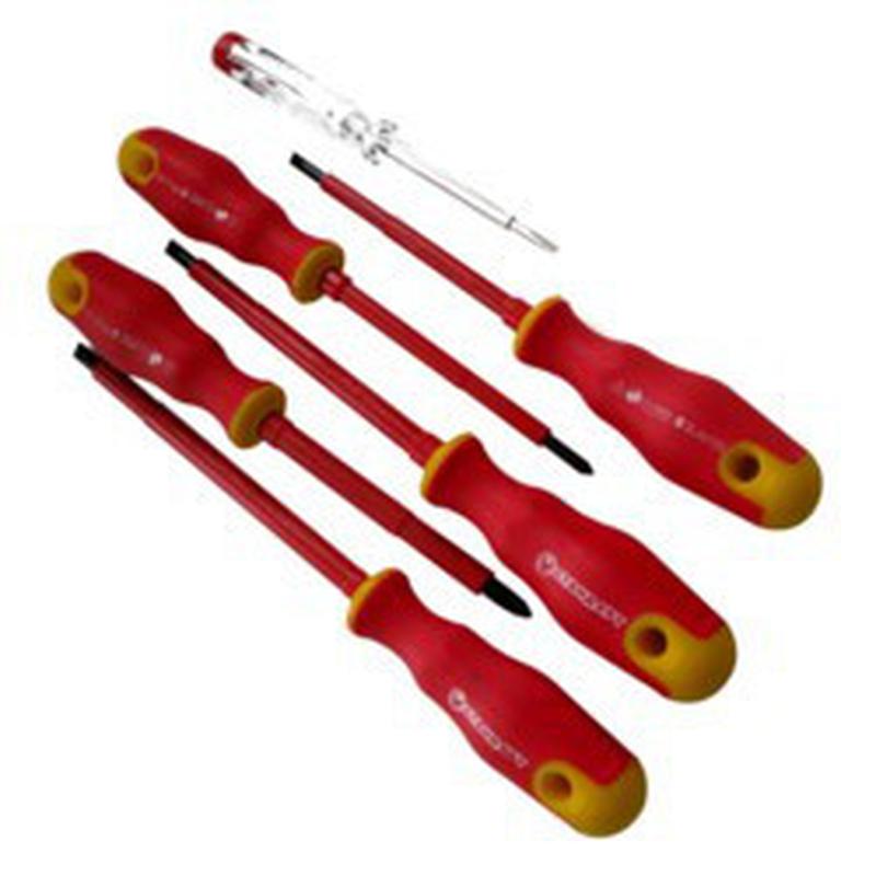 Набір діелектричних викруток (1000V) 6ед. СТАНДАРТ ISDS0601 включають в себе три шліцьові, дві хрестові викрутки і одну викрутку-індикатор різних розмірів.