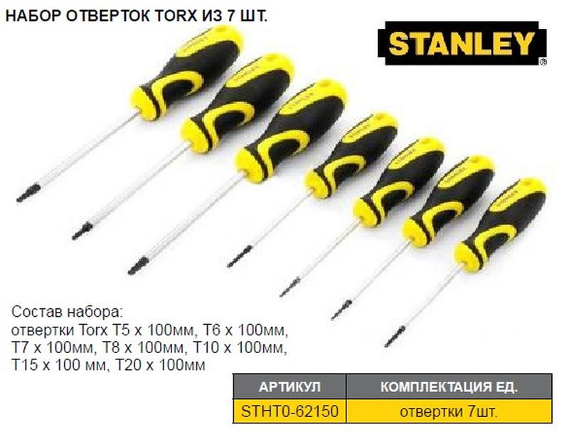 Набор отверток stanley torx t5, 6, 7, 8, 10, 15, 20 7 штук stht0-62150
