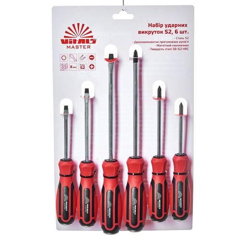 Набор ударных отверток vitals master s2, 6 шт. стальные отвертки для ремонта авто и дома....