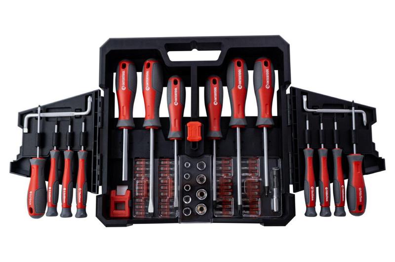 Универсальный набор отверток, бит и головок изготовлен по последним технологиям и отвечает высоким требованиям мастеров. Предназначен для монтажа и демонтажа резьбовых соединений с разными типами шлицев. Данный комплект станет отличным помощником в домашнем арсенале инструмента, а также в собственной мастерской на производстве. Все инструменты из набора уложены в компактный и удобный кейс на замке. Отвертки, биты и головки надежно посиживают на собственных посадочных местах и ​​не выпадают. Благодаря конструкции из двух створок набор удобно раскрывается перед мастером, позволяя быстро выбрать подходящий инструмент. Комплектация Отвертка под биты; Переходник 1/4" Битодержатель магнитный Инструмент для намагничивания и размагничивания Отвертки: SL3*75 мм, SL5*100 мм, SL6*125 мм, PH2*100 мм, PH1*100 мм, PH0*75 мм Прецизионная отвертка: SL2*50 мм, SL2.5*50 мм, PH000*50 мм, PH00*50 мм, T6*50 мм, T8*50 мм Биты: SL3, SL4х2, SL5х2, SL6х2, PH0, PH1х2, PH2х2, PH3х2, PZ0, PZ1х2, PZ2х2, PZ3, T10, T15, T20, T25, T27, T30, T35, H3, H4, H4 S1, S2, S3 Г-образный двухсторонний ключ 2 шт.: PH2-6 мм, PH1-5 мм Головки 1/4": 4, 5, 6, 7, 8, 9, 10, 11, 12 мм.
