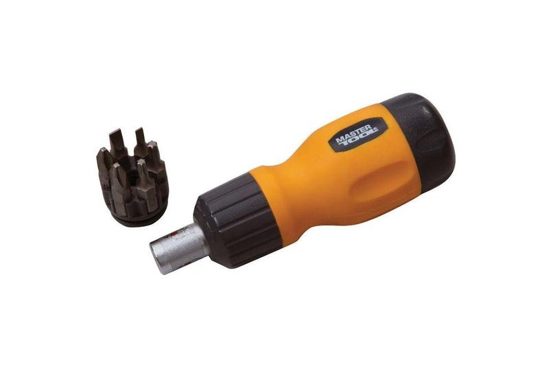 Отвертка переставная длиной 110 мм предназначена для вкручивания и откручивания шурупов, саморезов и винтов. Имеет обеспечивающий продолжительный срок службы корпус из ударопрочной пластмассы в котором размещен специальный магазин для хранения 6 бит из хромванадиевой стали (Torx: T20, T15; крестовая PH: PH2; шлицевая SL: SL5, SL3; длина бит 25 мм). Упрочненный реверсивный механизм имеет три положения: откручивание, закручивание, неподвижное.