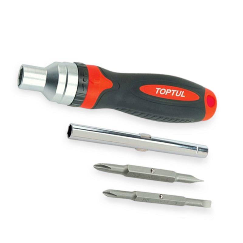 Отвертка 2-х сторон. с удлинителем 7в1 CrV трещоточная Toptul
