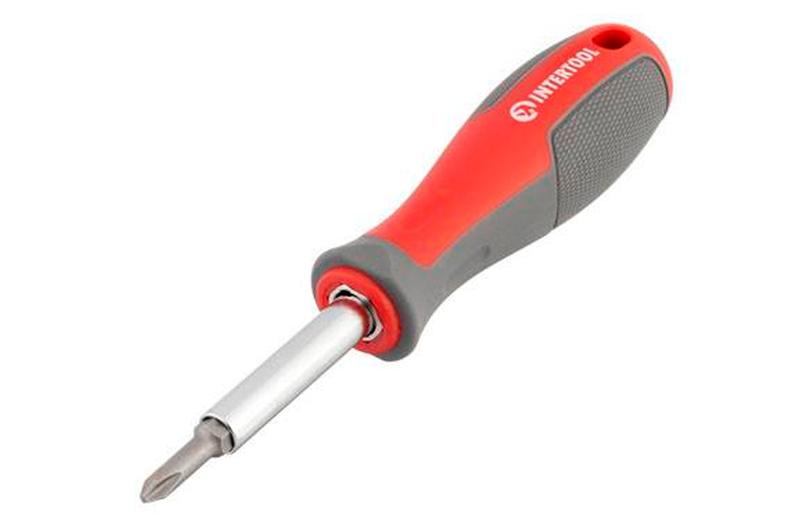 Отвертка с двухсторонними битами VT-3341 предназначена для монтажа и демонтажа резьбовых соединений с типом шлица: SL5/ PH1, SL6/PH2. Также при помощи переходника вы сможете работать с крепежами с наружным шестигранником H6 и H8. Набор изготовлен по последним технологиям и соответствует высоким запросам мастеров. Станет отличным помощником в домашнем арсенале инструмента, а также в собственной мастерской, на производстве. Высокое качество стали Стрежень отвертки и насадки изготовлены из Cr-V стали, которая известна всем мастерам своей надежностью и выносливостью. В составе этой стали присутствуют хром и ванадий, которые придают изделию высокую стойкость к износу. Также сталь отличается долговечностью и не подвержена хрупкому разрушению. Все инструменты покрыты антикоррозионным слоем. Надежное крепление насадок Стержень отвертки и все насадки имеют один тип крепления - подпружиненный шарик. Благодаря этому конструкция отвертки избавлена от люфтов, а биты крепко сидят на посадочных местах. Удобная рукоятка Форма ручки обеспечивает максимальную эффективность от приложенного усилия. Двухкомпонентная рукоятка гарантирует отличное сцепление даже с влажными или скользкими руками, благодаря резиновым вставкам. Длина переходника: 115 мм; Шестигранник: внутренний H6, H8; Материал рукоятки: двухкомпонентная, прорезиненная