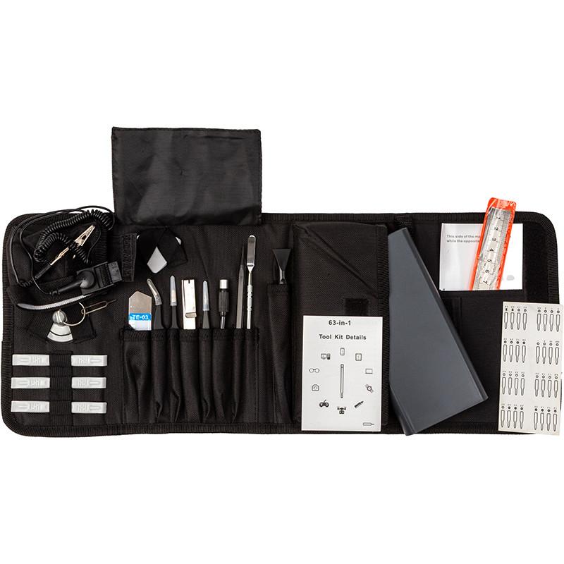 Набор магнитных отверток, 89 предметов Характеристики: Профессиональный набор инструментов для ремонта прецизионной электроники. Подходит для большинства бытовых устройств, таких как мобильные телефоны, очки, планшеты, цифровые камеры, часы и т.д. Биты отвертки изготовлены из высокопрочной легированной стали S2 с твердостью до 60HRC – просты в использовании и долговечны. Удобные магнитные отвертки помогают эффективно собирать винты. Прочный, надежно замыкающийся, раздвижной магнитный футляр обеспечивает безопасное хранение бит. Антистатический браслет предотвращает электростатический разряд, который может повредить чувствительные электронные компоненты. В комплекте прецизионная линейка длиной 15.5 мм с подолю 0.5 мм. В комплекте удобный магнитный коврик для винтов размером 135x75 мм. Комплект включает: биты для отвертки и ручку в футляре, черный портативный тканевый чехол для всех инструментов, линейку, антистатический ремешок на запястье, набор пинцетов из 3 предметов (острый, тупой и угловой), набор пластиковых инструментов для подмыкание из 5 предметов, металлический инструмент для подмыкания, гибкий инструмент для подмыкания, выдвижной универсальный нож, 8 пластиковых треугольников (для открытия устройств без царапин), гибкий удлинитель отвертки, резиновая присоска с кольцом (для снятие экрана), инструмент для извлечения SIM-карты и магнитную накладку на инструмент. Технические характеристики: Количество бит: 62. Материал: сталь S2. Цвет: серый. Длина ручки ответвления: 126 мм. Длина бит: 28 мм. Размер футляра: 168x80x20 мм. Размеры бит: Phillips (cross): PH00000, PH0000, PH000, PH00, PH0, PH1, PH2. Flat head screwdriver: SL1.0, SL1.3, SL1.5, SL2.0, SL2.5, SL3.0, SL4.0. Torx: T1,T2, T3, T4, T5. Security Torx: T6H, T7H, T8H, T9H, T10H, T15H, T20H. Hex screwdriver: H0.7, H0.9, H1.3, H1.5, H2.0, H2.5, H3.0, H3.5, H4.0. Y shapes: Y0.6, Y1.5, Y2.5, Y3.0. Five-pointed star shapes: P2 0.8, P5 1.2, P6 1.5, P8 2.0. Triangle: 2.0, 2.3, 3.0. Square: SQ0, SQ1, SQ2. U-Type (Spanner): U2.3, U2.6. 2.5 (MID). Pozidriv: PZ000, PZ00, PZ0, PZ1. Gamebit: G3.8, G4.5. Hex socket: M2.5, M3.0, M4.0. ICS. Размер в упаковке: мм. Вес в упаковке: г. Гарантия: 12 месяцев.