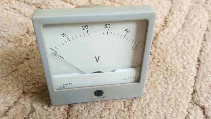 Виробник: Союз Тип обладнання: Інший тип обладнання Вольтметр постійного струму 0 - 50В М42100 розміром 80х80 мм.