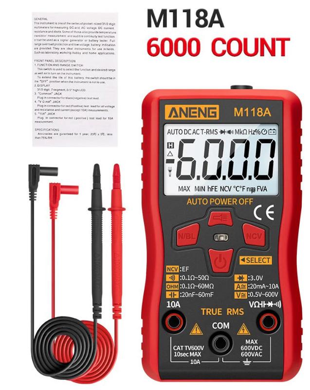 Мультиметр цифровой тестер амперметр aneng m118a. ncv. 6000 отсчётов. автомат.