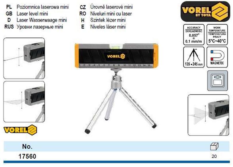 Уровень лазерный польша мини l=170 мм штатив vorel-17560