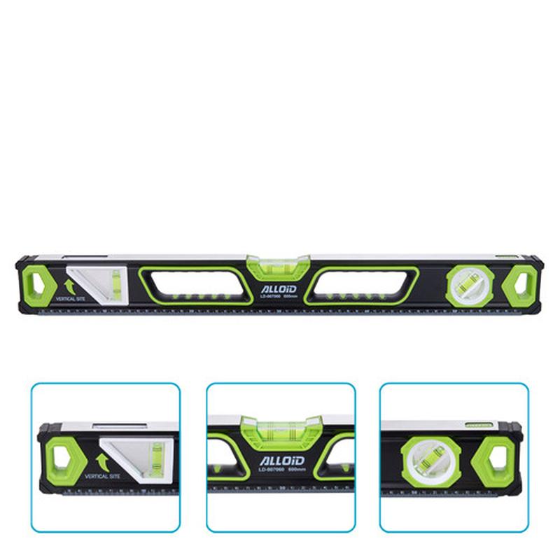 Уровень Alloid Pro LD913602 (60 см) — это точный и надежный инструмент для профессионального использования в строительстве, монтаже, СТО и ремонтных работах. Оснащен тремя капсулами (0°, 90°, 45°) і боковым окошком для удобного считывания вертикального наклона. Корпус изготовлен из анодированного алюминия, є встроенные магниты, миллиметровая шкала по всей длине и 2 эргономичных выреза для зручного хвату. Применение: - Разметка при строительстве - Установка мебели и бытовой техники - Работы на СТО и шиномонтаже - Монтаж гипсокартона и перегородок - Работы в ограниченных или вертикальных пространствах - Бытовой и профессиональный ремонт Характеристики уровня Alloid Pro LD913602: - Длина: 600 мм - Количество капсул: 3 (0°, 45°, 90°) - Боковое окошко: так — для удобного контроля вертикали - Магнитное основание: надежно держится на металлических поверхностях - Материал корпуса: анодированный алюминий, устойчивый к ударам - Шкала: миллиметровая по всей длине - Ручки: 2 эргономичных выреза для переноса и фиксации Уровень выдерживает падение, не боится влаги и обеспечивает точность даже в сложных условиях. Конструкция уровня Alloid Pro LD913602 создана для профессионалов: - Три капсули: четкий контроль горизонтали, вертикали и диагонали - Боковое окошко: для удобного считывания при вертикальном использовании - Магниты: держат уровень на металлических поверхностях без помощи рук - Корпус: алюминий с анодированием — не боится царапин и коррозии - Эргономика: удобные вырезы, сбалансированный вес – легко работать одной рукой Каждый элемент инструмента направлен на то, чтобы ускорить и упростить вашу работу. Комплектация - Строительный уровень Alloid Pro LD913602 - 1 шт - Заводская упаковка
