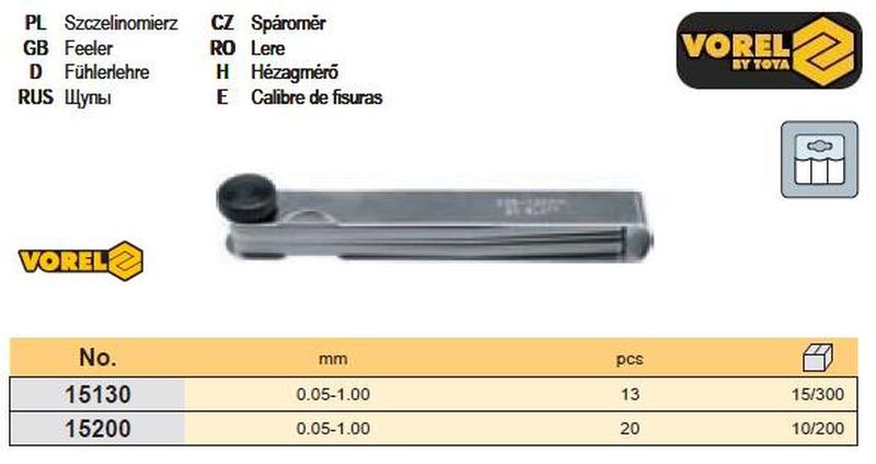 Набор щуп автомобильный польша 0,05-1,0 мм 20шт vorel-15200