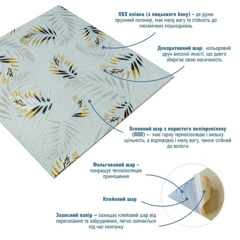Панель стеновая 3d 700х770х4мм папоротник на сером фоне (d) sw-00001982