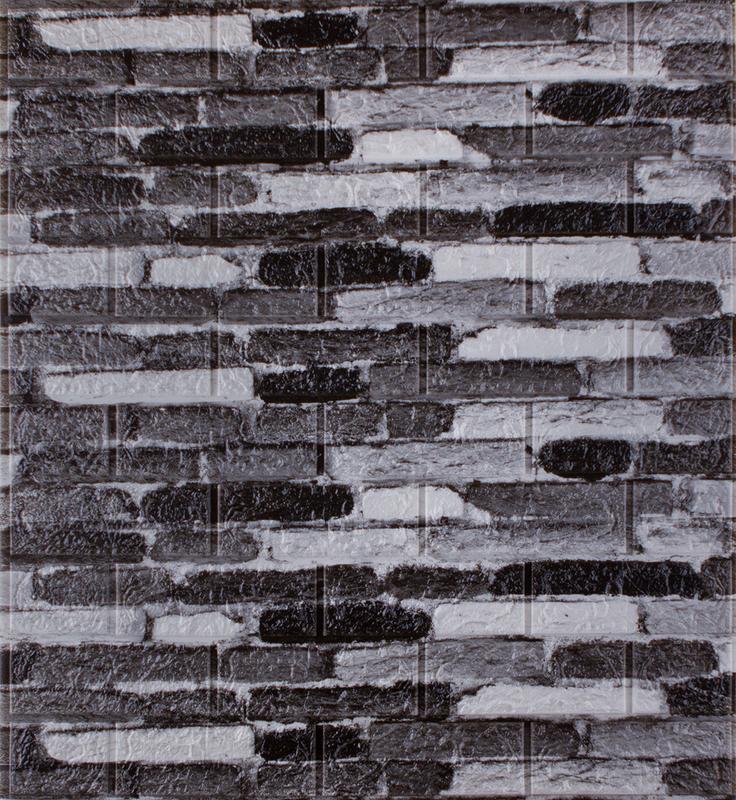 Стильная самоклеящаяся 3d панель черно-белый кирпич 700x770x5мм