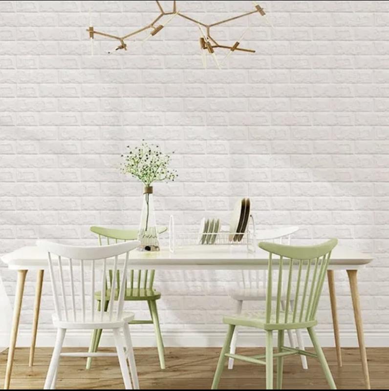 Самоклеящиеся настенные 3д панели (обои) под белый кирпич 77х70 см / декоративная белая па...