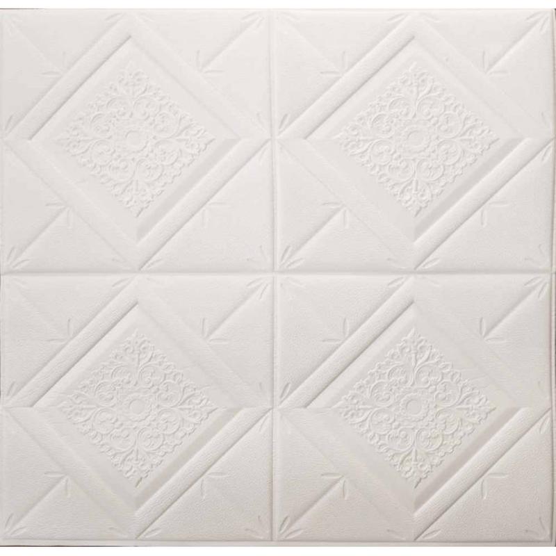 Самоклеющаяся 3d панель для потолка белая, узор в ромбе 700x700x6мм