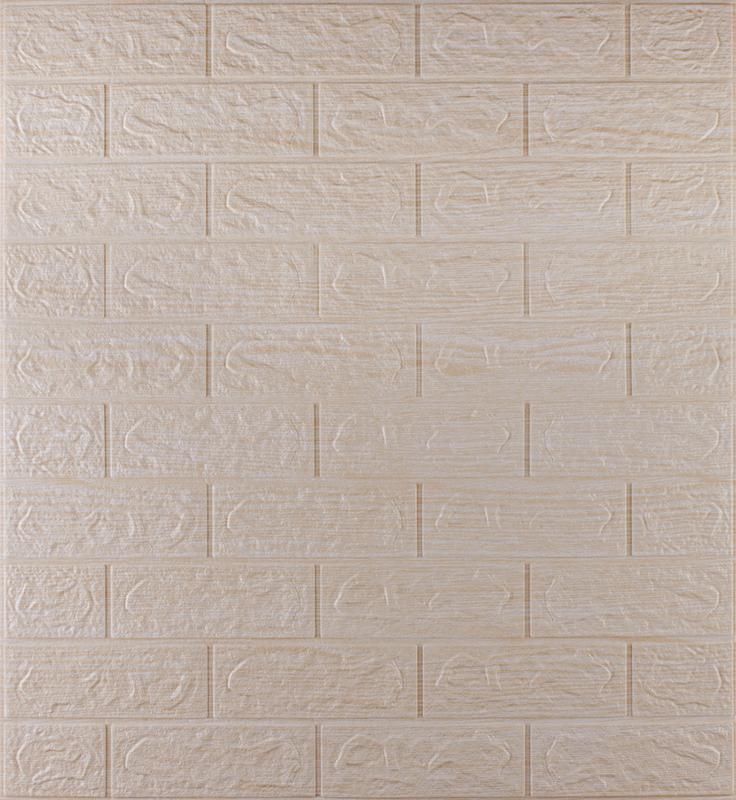 Самоклеющаяся 3d панель под кирпич бежевая полоска 700x770x3мм