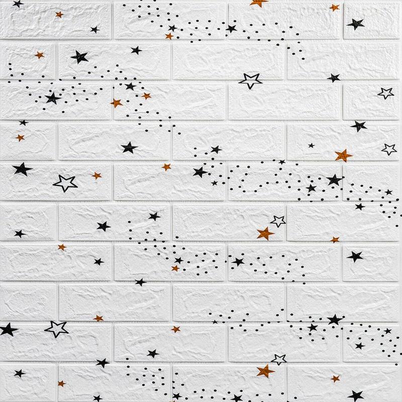 Стеновая 3d панель самоклейка белый кирпич звезды 700x770x5мм (021)