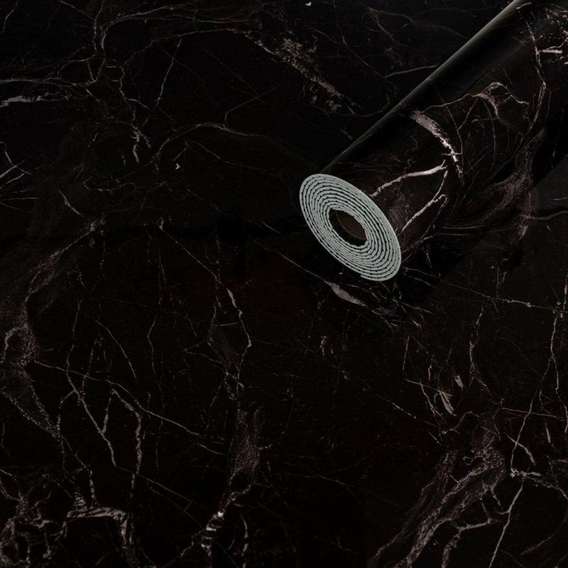 Самоклеящаяся виниловая плитка в рулоне черный мрамор 3000х600х2мм глянец sw-00001289