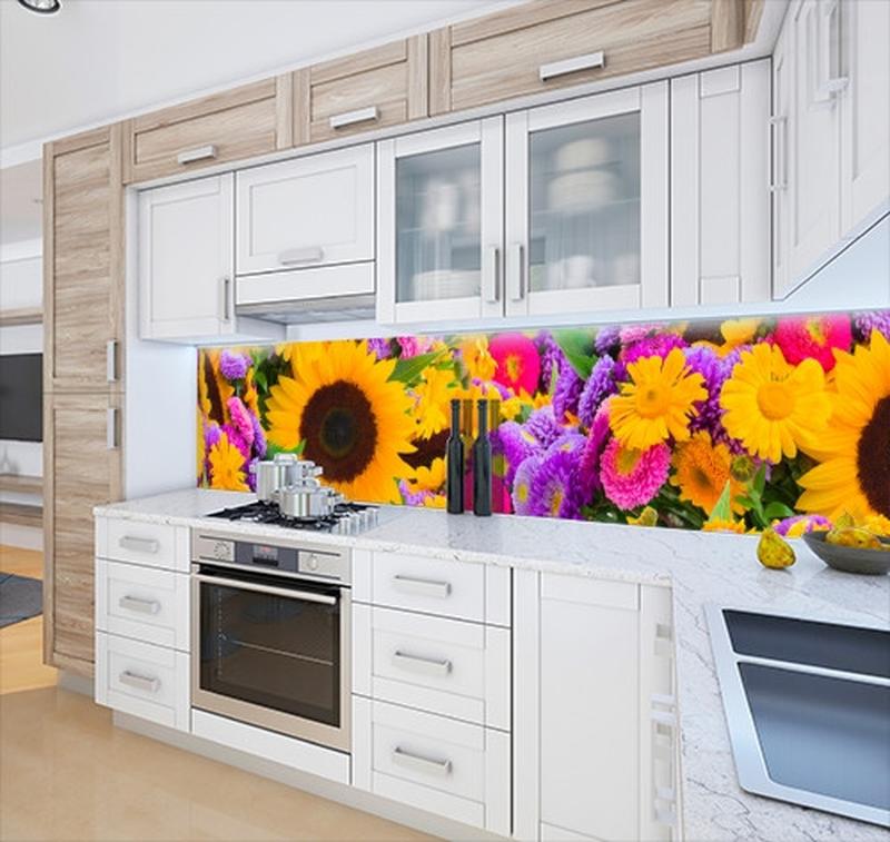 Кухонная панель жесткая пэт цветочный матив, с двухсторонним скотчем 62 х 205 см, 1,2 мм