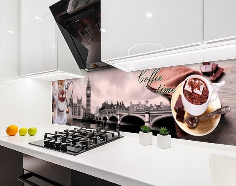 Панель на кухонний фартух під скло ранкову каву, з двостороннім скотчем 62 х 205 см, 1,2 м...