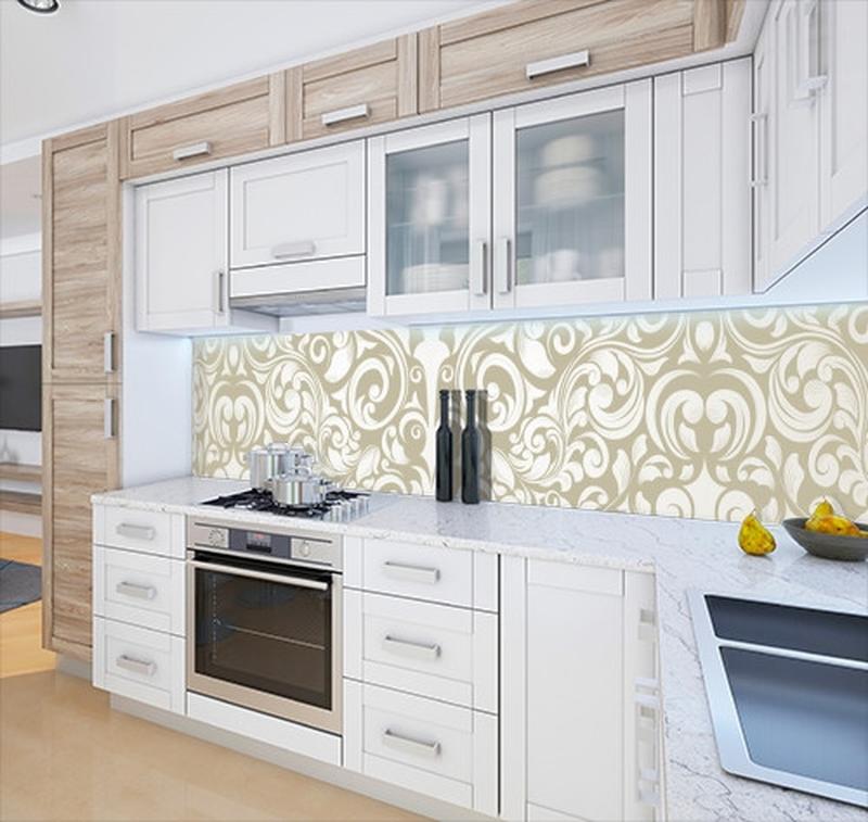 Кухонная панель на стену жесткая бежевые узоры, с двухсторонним скотчем 62 х 205 см, 1,2 м...
