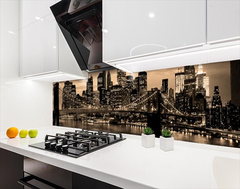 Панель на кухонный фартук под стекло бруклинский мост в лучах огней, с двухсторонним скотч...