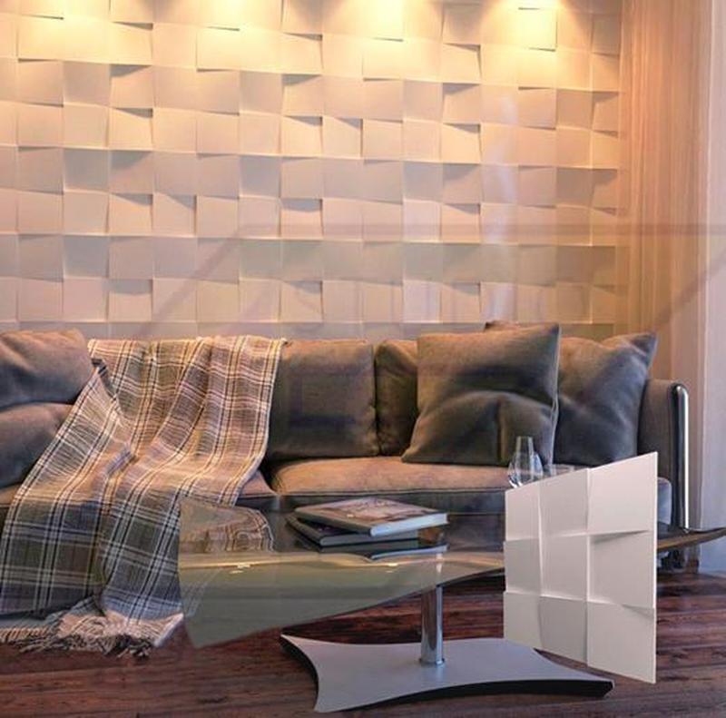 Описание Панели из гипса 3D Квадраты. Данная модель станет украшением любого интерьера и привлечет взгляды прогрессивных людей. Грани объемного рисунка расположены по отношению друг к другу под различными углами. Данную модель используют не только на стене, но и с переход на потолок, в совокупности с подсветкой можно достичь невероятного эффекта. Размер: 500 х 500 х 25мм.