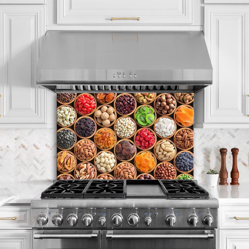 Стеклянная панель для кухни "симетрия вкусов" 60х40см
