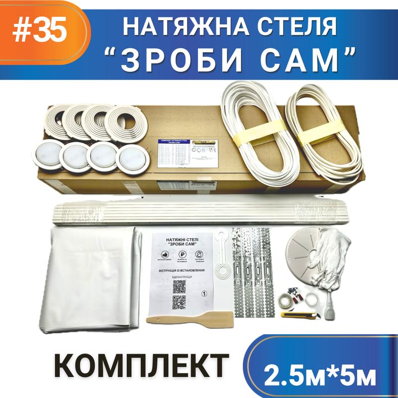 Комплект №35 (2,5м*5м) натяжного потолка сделай сам, без нагрева, білий мат