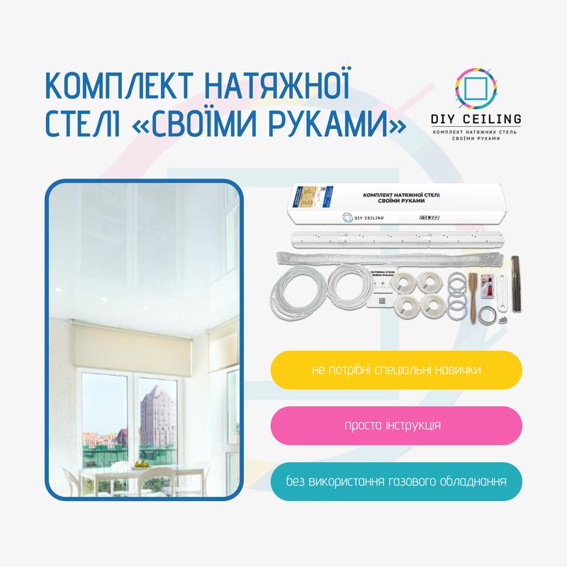 Натяжной потолок "Своими руками" - это возможность самостоятельно создать пространство своей мечты. Теперь Вы можете легко и креативно создать элегантный и стильный натяжной потолок без помощи специалистов и с экономией до 75%! Преимущества: - экономия до 75% средств на монтажных работах; - простой монтаж, не требующий специальных навыков; - монтаж без использования специальной тепловой пушки. Набор содержит: - белое матовое полотно, - профиль ПВХ, - гарпун, - декоративную вставку на профиль, - платформу для люстры, - 4 платформы для точечных светильников 55-110 мм, - термокольцо для люстры, - 4 термокольца 75мм, - подвесы, - саморезы, - универсальный обвод для трубы, - малярный скотч, - суперклей, - шпатель, - инструкцию по легкому монтажу. Инструкция шаг за шагом поможет Вам с легкостью овладеть процессом, даже если Вы новичок в ремонтных делах. Монтаж натяжного потолка очень прост и занимает всего несколько часов. Не требуется профессиональное тепловое оборудование, достаточно иметь обычный фен - для расглаживания складок. 1) Измерьте размеры комнаты, где хотите установить потолок; 2) Добавьте к каждому размеру 20 см; 3) На сайте выберите комплект, который подходит Вам лучше всего. Важно, чтобы запас полотна составлял не менее 20 см к каждой стороне, он может быть и больше; в телефонном разговоре с менеджером при необходимости измените комплектацию под свои нужды. Позвольте себе сэкономить до 75% средств на монтаже без экономии качества!