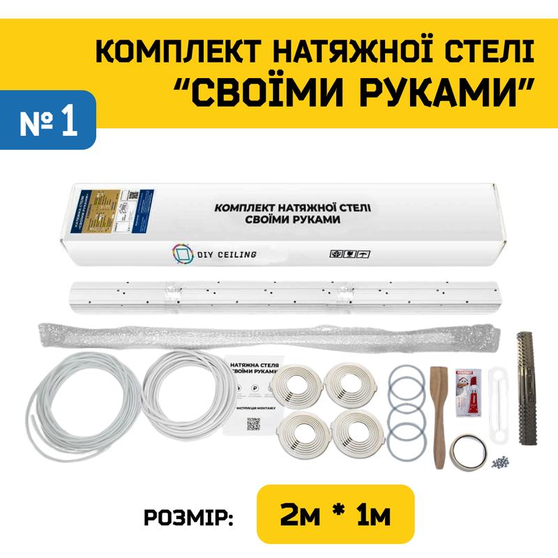 Натяжной потолок "Своими руками" - это возможность самостоятельно создать пространство своей мечты. Теперь Вы можете легко и креативно создать элегантный и стильный натяжной потолок без помощи специалистов и с экономией до 75%! Преимущества: - экономия до 75% средств на монтажных работах; - простой монтаж, не требующий специальных навыков; - монтаж без использования специальной тепловой пушки. Набор содержит: - белое матовое полотно, - профиль ПВХ, - гарпун, - декоративную вставку на профиль, - платформу для люстры, - 4 платформы для точечных светильников 55-110 мм, - термокольцо для люстры, - 4 термокольца 75мм, - подвесы, - саморезы, - универсальный обвод для трубы, - малярный скотч, - суперклей, - шпатель, - инструкцию по легкому монтажу. Инструкция шаг за шагом поможет Вам с легкостью овладеть процессом, даже если Вы новичок в ремонтных делах. Монтаж натяжного потолка очень прост и занимает всего несколько часов. Не требуется профессиональное тепловое оборудование, достаточно иметь обычный фен - для расглаживания складок. 1) Измерьте размеры комнаты, где хотите установить потолок; 2) Добавьте к каждому размеру 20 см; 3) На сайте выберите комплект, который подходит Вам лучше всего. Важно, чтобы запас полотна составлял не менее 20 см к каждой стороне, он может быть и больше; в телефонном разговоре с менеджером при необходимости измените комплектацию под свои нужды. Позвольте себе сэкономить до 75% средств на монтаже без экономии качества!