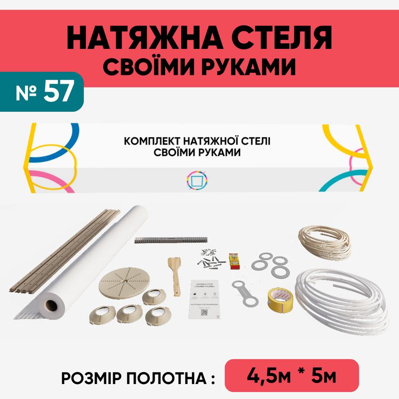 Натяжной потолок "Своими руками" - это возможность самостоятельно создать пространство своей мечты. Теперь Вы можете легко и креативно создать элегантный и стильный натяжной потолок без помощи специалистов и с экономией до 75%! Преимущества: - экономия до 75% средств на монтажных работах; - простой монтаж, не требующий специальных навыков; - монтаж без использования специальной тепловой пушки. Набор содержит: - белое матовое полотно, - профиль ПВХ, - гарпун, - декоративную вставку на профиль, - платформу для люстры, - 4 платформы для точечных светильников 55-110 мм, - термокольцо для люстры, - 4 термокольца 75мм, - подвесы, - саморезы, - универсальный обвод для трубы, - малярный скотч, - суперклей, - шпатель, - инструкцию по легкому монтажу. Инструкция шаг за шагом поможет Вам с легкостью овладеть процессом, даже если Вы новичок в ремонтных делах. Монтаж натяжного потолка очень прост и занимает всего несколько часов. Не требуется профессиональное тепловое оборудование, достаточно иметь обычный фен - для расглаживания складок. 1) Измерьте размеры комнаты, где хотите установить потолок; 2) Добавьте к каждому размеру 20 см; 3) На сайте выберите комплект, который подходит Вам лучше всего. Важно, чтобы запас полотна составлял не менее 20 см к каждой стороне, он может быть и больше; в телефонном разговоре с менеджером при необходимости измените комплектацию под свои нужды. Позвольте себе сэкономить до 75% средств на монтаже без экономии качества!