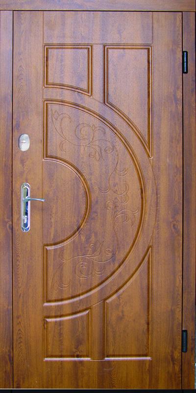 Двери входные Рассвет оптима. Стандартная дверь 860*2050 / размер 960*2050 + 200грн Технические характеристики: Коробка: гнутый профиль, Толщина 1,5мм ширина 75мм, заполнена минватой, евроуплотнитель. Дверное полотно толщина 70мм, в основе полотна ребра жесткости и лист метала толщиной 1,5 мм, с двух сторон обшито декоративными МДФ накладками толщиной 16+10мм Петли 2 шт. +антисрезы. Наполнение полотна минвата Рисунок на этой двери ― с двух сторон. Комплектация замков: главный замок «Апекс» под сердечник и дополнительный замок «Аверс» сейфовый (или аналоги). Ручка на двери на планке (на розетке +300грн) Глазок Aверс