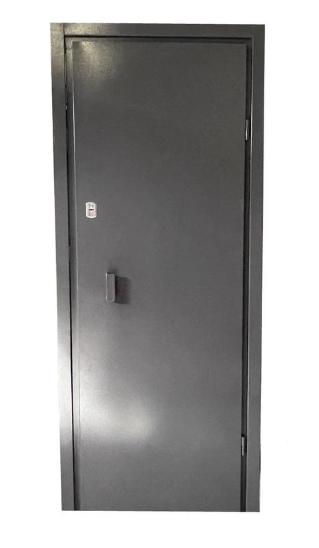 Размер: 780 х 2000 Толщина полотна: 45 мм накладки 1 лист Толщина листа металла: 1 мм Рама: 40х40 (1мм) Ребра жесткости: + Наличники+ Уплотнитель: 1 контур Монтажные пластины: 6шт, приваренные Петли: 2шт Порошковая Покраска: цвет мокрый асфальт Фурнитура: замок сувальдный ключ бабочка ручка приварная